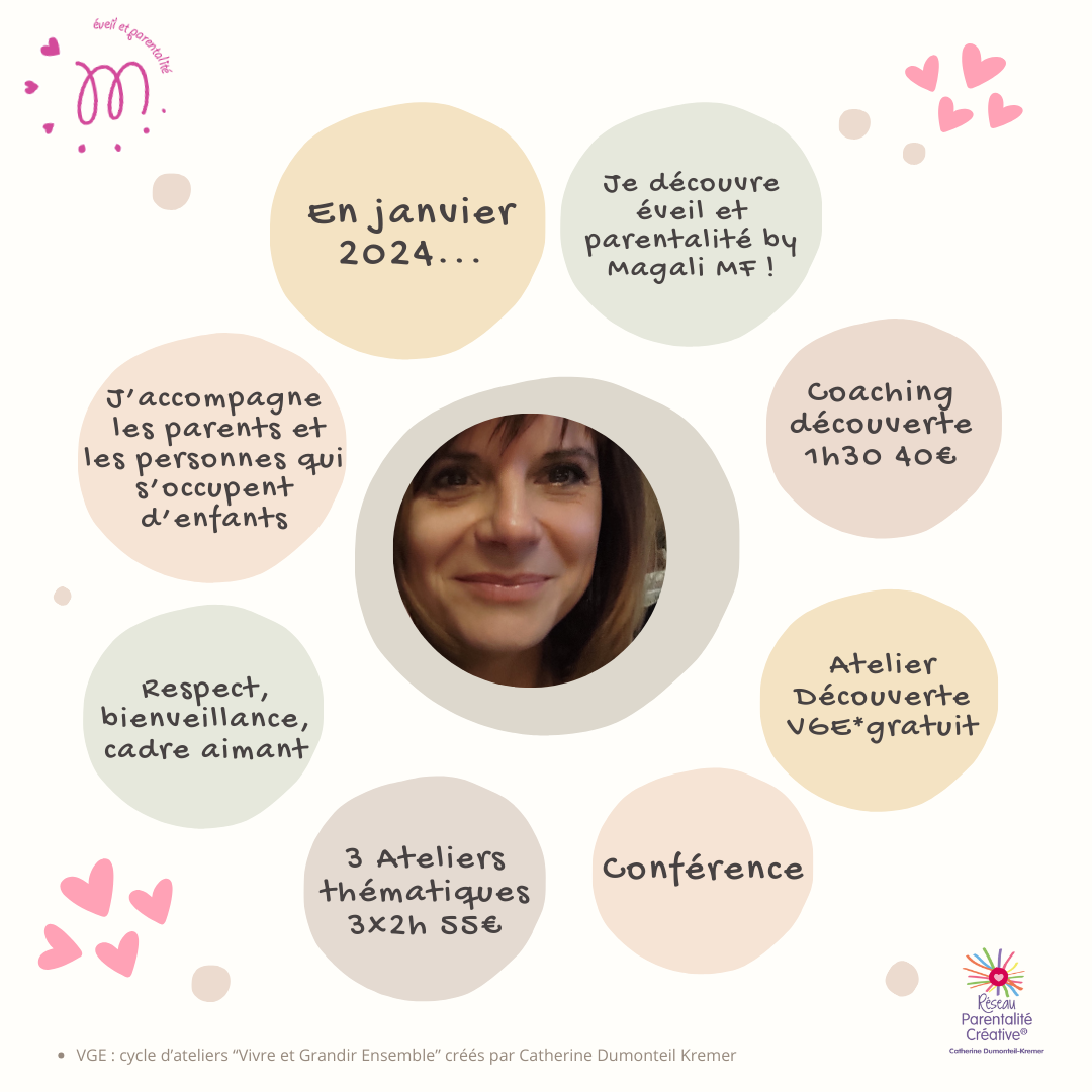Le cycle "Vivre et grandir Ensemble" créé par Catherine DUMONTEIL KREMER est une aventure au cœur de soi. Il répond aux principaux thèmes essentiels à la parentalité.